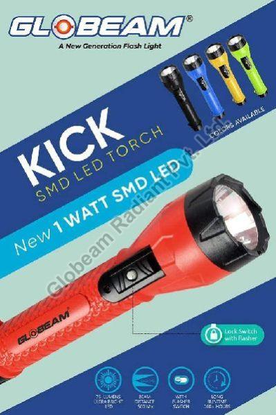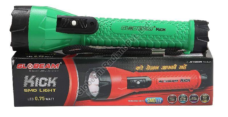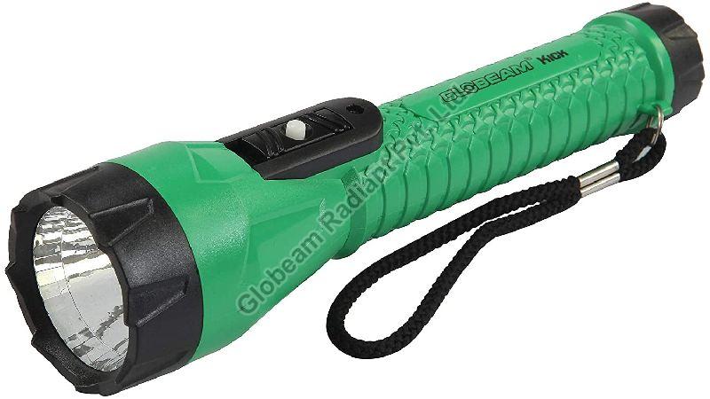 With a very fantastic body and unique design, the GLOBEAM KICK TORCH comes from the best torch brand in India. This is one of the best flashlights which needs 3 AA size batteries to function. The torch has a 0.50 watt LED, which provides very bright light and is extremely helpful in large organizations as well as small homes and households. It can be used in schools, hospitals, corporate establishments, etc. GLOBEAM KICK TORCH is very easy to carry and have a huge demand all over India which enable GLOBEAM a trustworthy and resilient manufacturer and exporter all over India and Others countries The design of the LED torchlight is very impressive, and it is very narrow toward the end and broad on the front, so as to give a fancy design. There is a Slider lock button on the torch and very easy to operate. here are some specifications of this torch as below: manufactured: MADE IN INDIA Brand: GLOBEAM Material: Plastic ABS LED Wattage: 0.50 watt Battery Details: 3-AA size Switch Details: Dual Switch with Flasher.